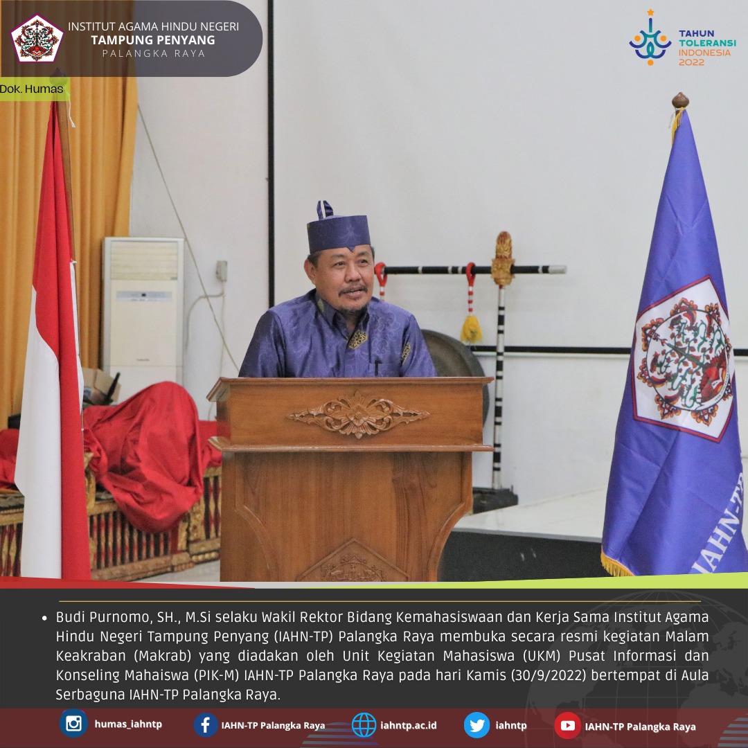 HUMAS IAAHNTPnews,- Untuk menjalin keakraban antar pengurus dan anggota UKM PIK-M serta menambah wawasan dan pengetahuan mahasiswa(i) tentang UKM PIK-M, Unit Kegiatan Mahasiswa (UKM) Pusat Informasi dan Konseling Mahasiswa (PIK-M) Institut Agama Hindu Negeri Tampung Penyang (IAHN-TP) Palangka Raya melaksanakan kegiatan Ramah Tamah dengan mengadakan Malam Keakraban (Makrab) di Gedung Aula Serbaguna IAHN-TP Palangka Raya, Jumat (30/9/2022).