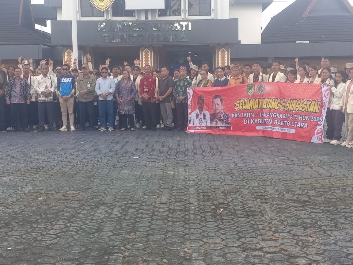 Sebanyak 169 mahasiswa Institut Agama Hindu Negeri Tampung Penyang (IAHN-TP) Palangka Raya resmi diterima untuk melaksanakan Kuliah Kerja Nyata (KKN) di Kabupaten Barito Utara. Penyambutan berlangsung dengan penuh antusias, dihadiri oleh berbagai pihak, termasuk perwakilan pemerintah daerah dan majelis daerah setempat. Bertempat di Barito Utara pada hari Sabtu. (01/03)