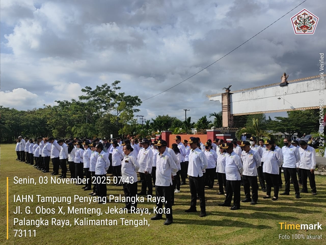 IAHNTPNews,- Institut Agama Hindu Negeri Tampung Penyang (IAHN-TP) Palangka Raya melaksanakan apel pagi di halaman Rektorat pada Senin (03/11). Apel ini dipimpin langsung oleh Rektor IAHN-TP, Dr. Mujiyono, S.Ag., M.Ag.