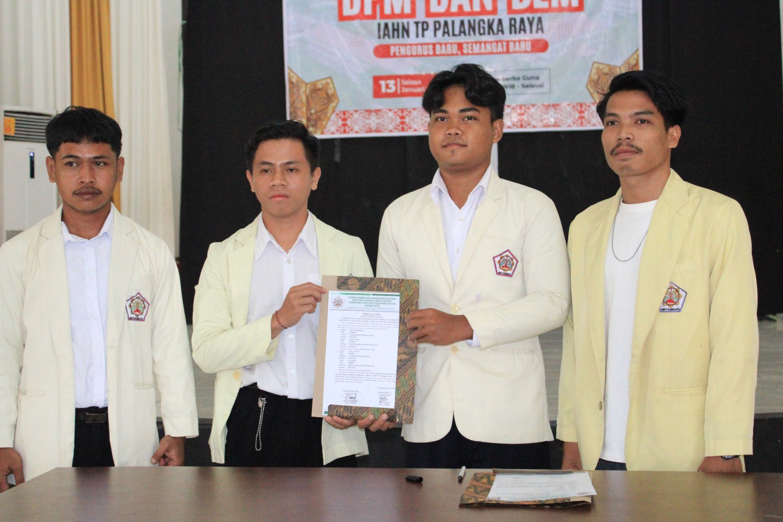 Adapun Presiden BEM terpilih adalah Yaya Laverda dengan Asbradana sebagai Wakil Presiden BEM. Sementara itu, Yongi terpilih sebagai Ketua DPM IAHN-TP Palangka Raya.