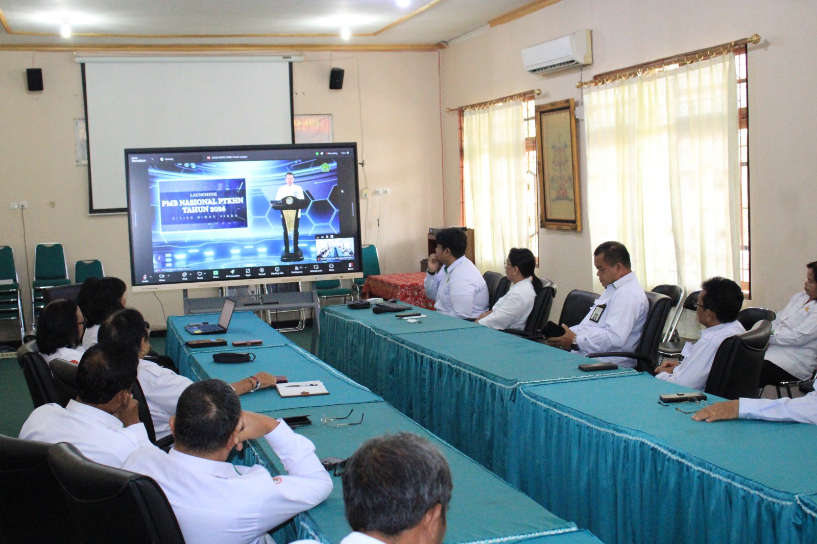 IAHNTPNews,- Institut Agama Hindu Negeri Tampung Penyang (IAHN-TP) Palangka Raya mengikuti kegiatan Launching Penerimaan Mahasiswa Baru (PMB) Nasional Perguruan Tinggi Keagamaan Hindu Negeri (PTKHN) Tahun 2026 yang dilaksanakan secara daring melalui Zoom Meeting, bertempat di Ruang Rapat Lantai II Rektorat IAHN-TP, Selasa (20/01).