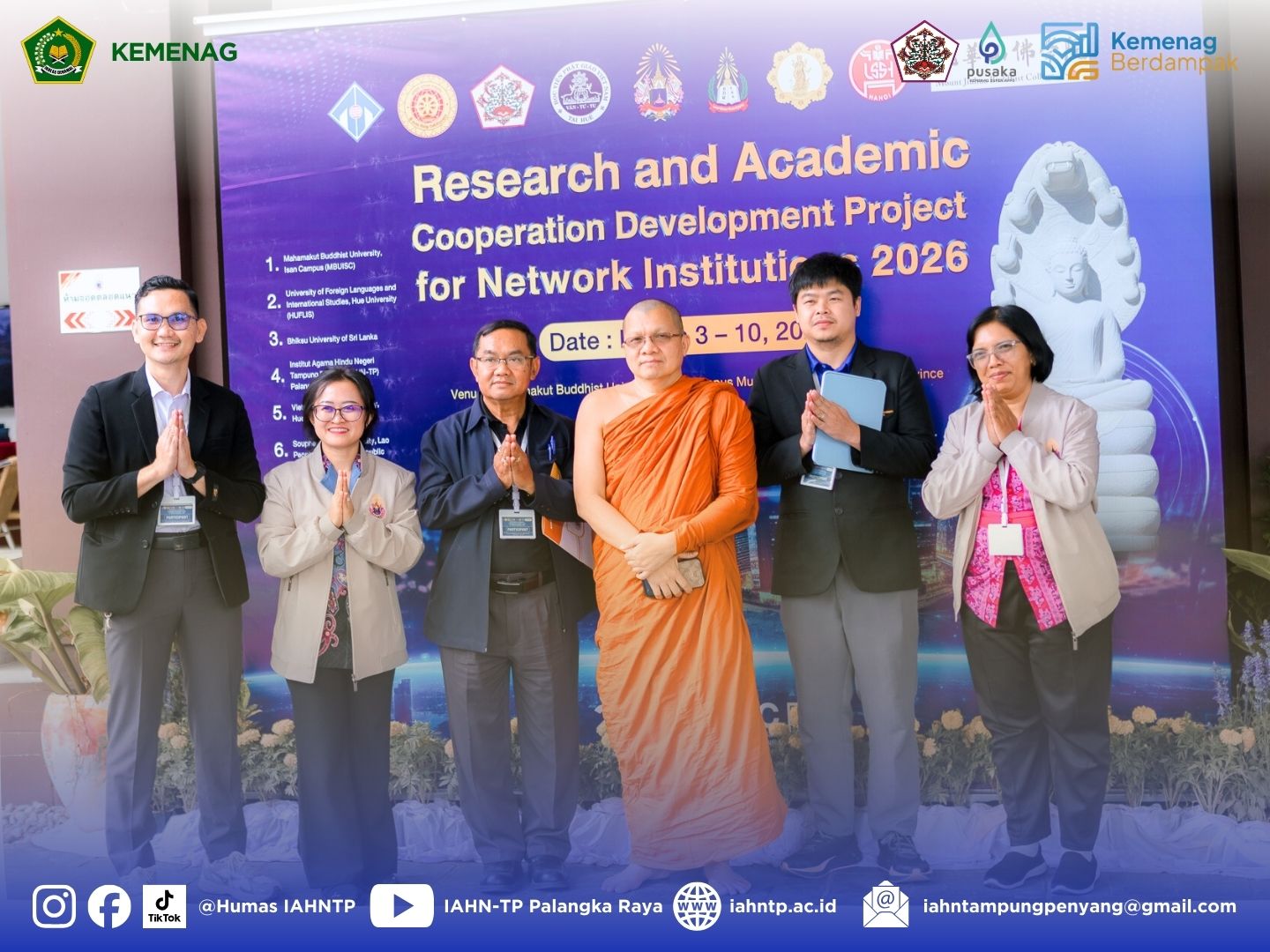 MENYALANews,- Institut Agama Hindu Negeri (IAHN) Tampung Penyang Palangka Raya kembali memperluas jejaring akademik internasional melalui partisipasi dosen dalam kegiatan Research and Academic Cooperation Development Project for Network Institution 2026 yang diselenggarakan oleh Mahamakut Buddhist University Isan Campus (MBU ISC), Thailand.