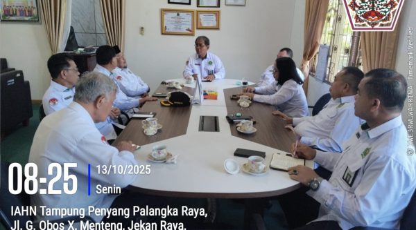 IAHNTPnews,- Institut Agama Hindu Negeri Tampung Penyang (IAHN-TP) Palangka Raya menggelar kegiatan Sosialisasi Visi, Misi, Tujuan, dan Strategi IAHN-TP Tahun 2025 di Aula Serbaguna kampus setempat pada Kamis (16/10). Kegiatan ini dihadiri oleh Gubernur Kalimantan Tengah yang diwakili oleh Staf Ahli Bidang Kemasyarakatan dan SDM, Hamka, S.Pd., M.Pd., Walikota Palangka Raya, Kabid Bimas Hindu Kanwil Kemenag Prov. Kalteng, Ketua PHDI Prov. Kalteng, perwakilan perguruan tinggi negeri dan swasta, Bank...