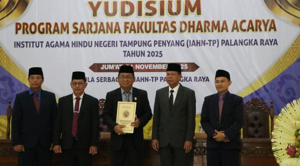 TPNews,- Fakultas Dharma Acarya (FDA) Institut Agama Hindu Negeri (IAHN) TP Palangka Raya menggelar acara yudisium pada hari Jumat, (21/11) di Aula Serba Guna kampus. Sebanyak 102 di yudisium dari tiga program studi mengikuti prosesi tersebut: 49 orang dari Program Studi Pendidikan Agama Hindu (PAH), 20 orang dari Program Studi Pendidikan Seni dan Keagamaan (PSN), serta 33 orang dari Program Studi Pendidikan Guru Sekolah Dasar (PGSD). Dekan FDA, Dr. Derson,...Read More