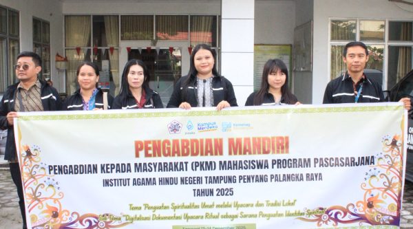 IAHNTPNews,- Program Pascasarjana Institut Agama Hindu Negeri Tampung Penyang (IAHN-TP) Palangka Raya melaksanakan kegiatan Pengabdian Kepada Masyarakat (PKM) di dua lokasi, yaitu Desa Malawaken I, Kecamatan Teweh Baru, Kabupaten Barito Utara, dan pengabdian mandiri di Desa Tangkaheng, Kecamatan Banama Tingang, Kabupaten Pulang Pisau. Kegiatan ini secara resmi dilepas oleh Direktur Pascasarjana, Prof. Drs. I Ketut Subagiasta, M.Si., D.Phil, didampingi unsur pimpinan Pascasarjana pada Kamis (11/12). Dalam sambutannya, Direktur Pascasarjana menyampaikan...Read More