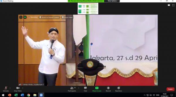 IAHN-TPnews,- Selasa(27/04/2021) Prof. Drs. I Ketut Subagiasta, M.Si.,D.Phil selaku Rektor Institut Agama Hindu Negeri Tampung Penyang (IAHN-TP) Palangka Raya menghadiri secara virtual kegiatan Rapat Kerja Pejabat Pusat, Daerah, dan Perguruan Tinggi Keagamaan Hindu Negeri di bawah Direktorat Jenderal Bimbingan Masyarakat (Ditjen Bimas) Hindu Kementerian Agama RI Tahun 2021 yang digelar di Auditorium H.M. Rasjidi Gedung Kementerian Agama, Jl. M.H. Thamrin No.6 Jakarta Pusat. Pada waktu yang sama, Dr. Drs. Ida...Read More