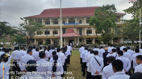 IAHNTPnews,- Institut Agama Hindu Negeri Tampung Penyang (IAHN TP) Palangka Raya melaksanakan apel pagi ASN pada Senin (15/09/2025) dengan arahan langsung dari Rektor IAHN TP, Dr. Mujiyono, S.Ag., M.Ag. Dalam sambutannya, Rektor menegaskan pentingnya seluruh Aparatur Sipil Negara (ASN) untuk selalu melaksanakan layanan sesuai dengan Standar Operasional Prosedur (SOP). Menurutnya, pelayanan yang diberikan harus jelas, lengkap, serta mampu memenuhi kebutuhan masyarakat dengan cepat dan tepat waktu. “Berikan informasi yang jelas...Read More
