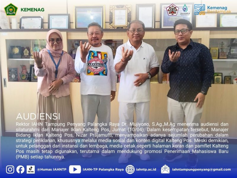 MENYALA,- Dalam sebuah pertemuan yang penuh kehangatan dan nuansa persaudaraan lintas bangsa, Rektor Institut Agama Hindu Negeri (IAHN) Tampung Penyang Palangka Raya, Dr. Mujiyono, memberikan cenderamata spesial kepada tamu kehormatan, pemuka agama Buddha (Bhante) dari Thailand. Bukan sekadar kenang-kenangan biasa, Rektor menyerahkan buah pemikiran mendalamnya yang dituangkan dalam sebuah buku berjudul “MISTISISME HINDU KAHARINGAN Pada...Read More