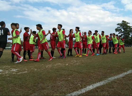 Foto tim U21 IAHN TP dan U21 UPR berjabat tangan tanda persahabatan