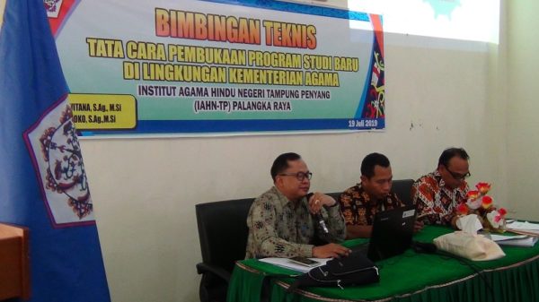 IAHN-TPnews,- Institut Agama Hindu Negeri Tampung Penyang (IAHN-TP) Palangka Raya menyelenggarakan Bimbingan Teknis (Bimtek) pada hari Jumat, 19 Juli 2019, bertempat di Ruang Rapat Gedung Rektorat Lantai II IAHN-TP Palangka Raya. Bimtek ini mengusung tema: “Tata Cara Pembukaan Program Studi Baru di Lingkungan Kementerian Agama”, dengan menghadirkan dua narasumber yaitu: I Nyoman Witana, S.Ag., M.Si...Read More
