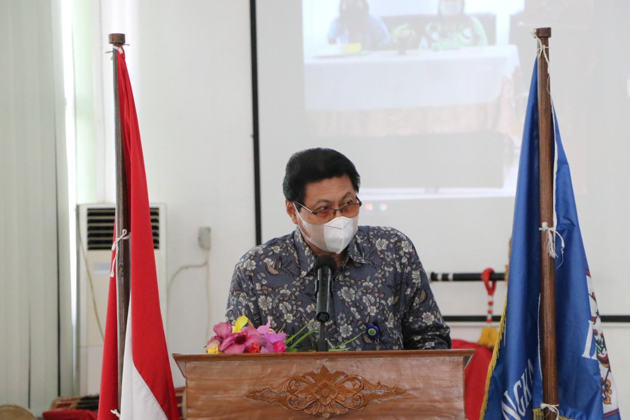 IAHNTPnews,- Rektor Institut Agama Hindu Negeri Tampung Penyang (IAHN-TP) Palangka Raya, Prof. Drs. I Ketut Subagiasta, M.Si., D.Phil menutup secara resmi kegiatan Rapat Kerja Institut Agama Hindu Negeri Tampung Penyang Palangka Raya Tahun 2022, Jumat (18/02/2022) bertempat di Gedung Aula Serbaguna IAHN-TP Palangka Raya Jalan G.Obos X.