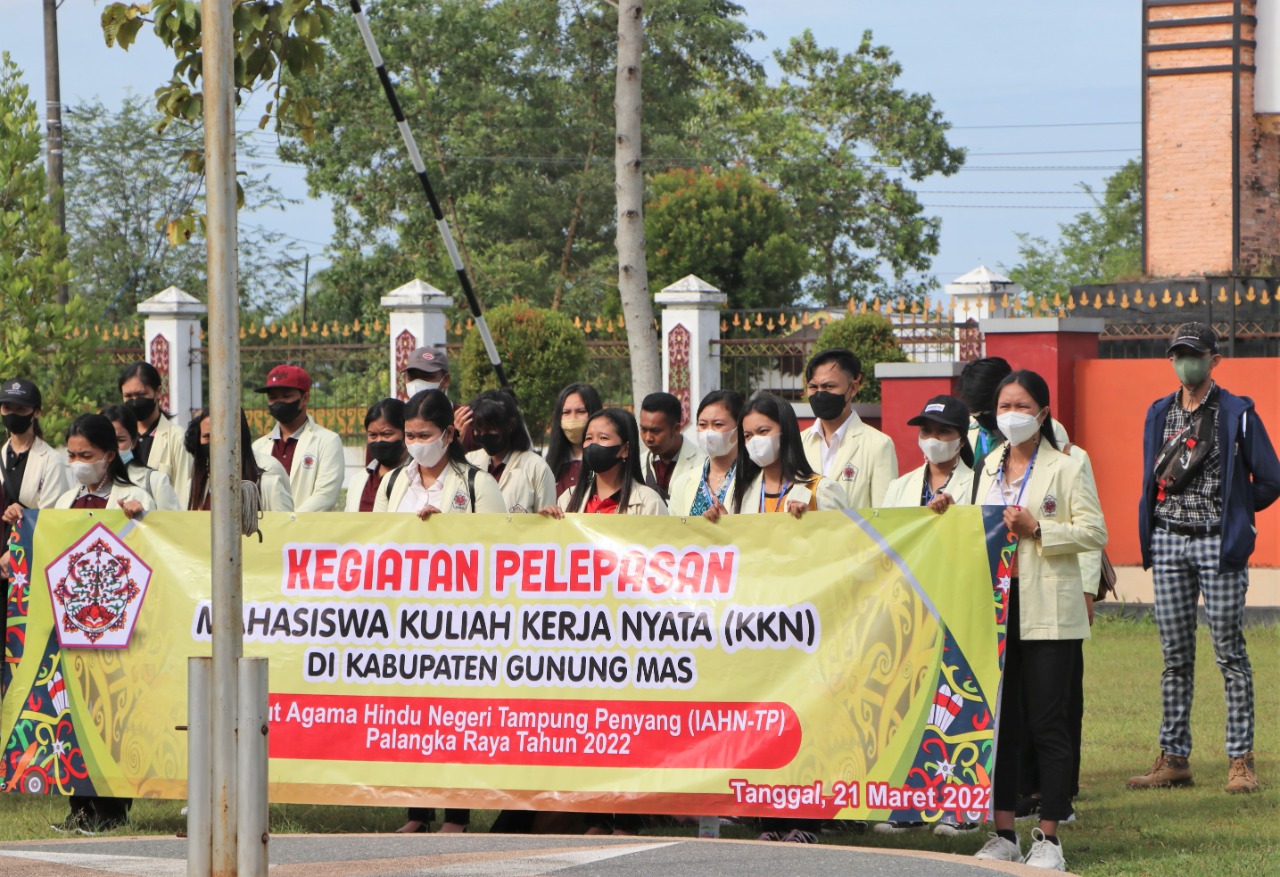 IAHNTPnews,- Lembaga Penelitian dan Pengabdian kepada Masyarakat (LPPM) Institut Agama Hindu Negeri Tampung Penyang (IAHN-TP) Palangka Raya melaksanakan kegiatan Pelepasan Mahasiswa Kuliah Kerja Nyata (KKN) Tahun 2022, Senin (21/03/2022) di Halaman Gedung Rektorat IAHN-TP Palangka Raya.