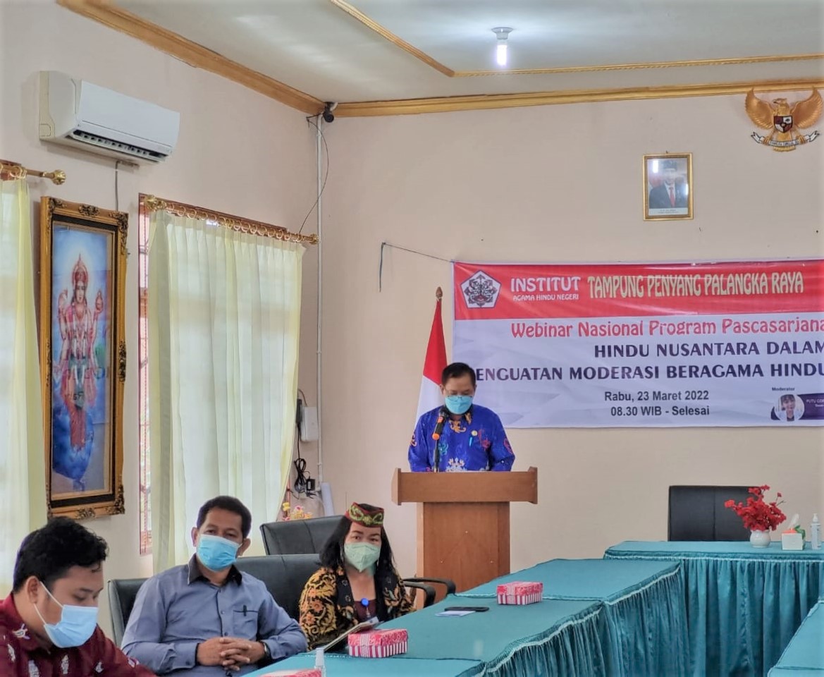 IAHNTPnesw,- Program Pascasarjana Institut Agama Hindu Negeri Tampung Penyang (IAHN-TP) Palangka Raya mengadakan Webinar Nasional dengan tema “Hindu Nusantara Dalam Penguatan Moderasi Beragama Hindu”, Rabu (23/03/2022).