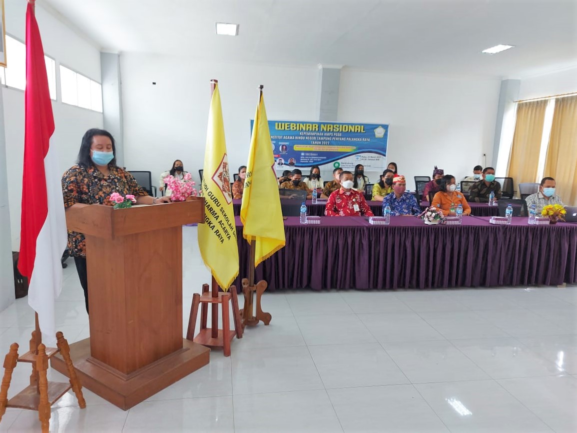 IAHNTPnews,- Agar mampu mewujudkan mahasiswa yang aktif dalam mengembangkan pengetahuan dan keterampilannya di era kompetitif, Himpunan Mahasiswa Program Studi (HMPS) Pendidikan Guru Sekolah Dasar (PGSD) Fakultas Dharma Acarya, Institut Agama Hindu Negeri Tampung Penyang (IAHN-TP) Palangka Raya mengadakan kegiatan Webinar Nasional Kepemimpinan dengan mengangkat tema “Mencetak Pemimpin Generasi Muda yang Cerdas dan Humanis” melalui aplikasi Zoom Meeting, Rabu (23/03/2022).