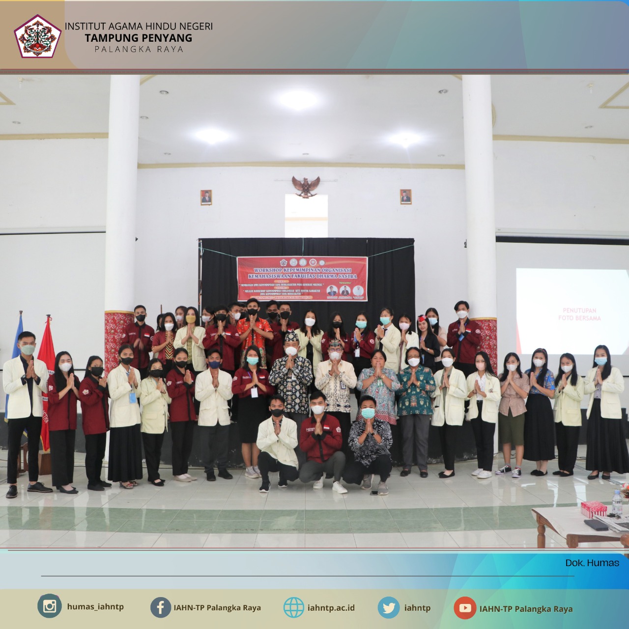 IAHNTPnews,- Untuk menambah wawasan sebagai bekal menjadi calon pemimpin serta agar para generasi muda dapat memiliki wawasan tentang organisasi dan seputar kepemimpinan dalam organisasi, Badan Eksekutif Mahasiswa (BEM) Fakultas Dharma Sastra Institut Agama Hindu Negeri Tampung Penyang (IAHN-TP) Palangka Raya menggelar Workshop Kepemimpinan Organisasi dengan tema “Membangun Jiwa Kepemimpinan yang Berkarakter Pada Generasi Muda Milenial“, Jumat (20/05/2022) bertempat di Aula Serbaguna IAHN-TP Palangka Raya.