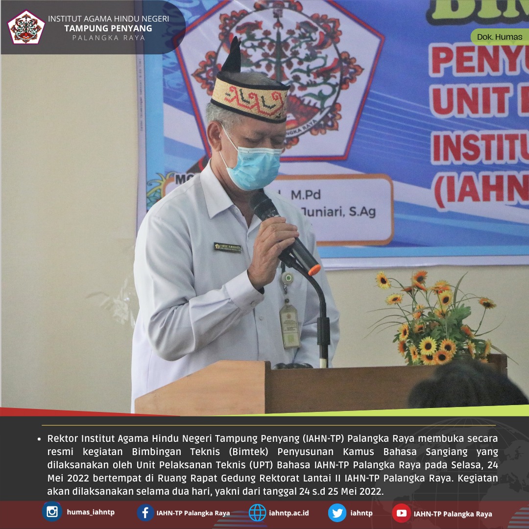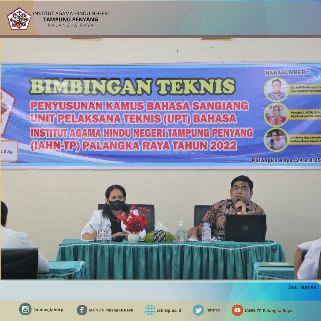 IAHNTPnews,- Unit Pelaksana Teknis (UPT) Bahasa Institut Agama Hindu Negeri Tampung Penyang (IAHN-TP) Palangka Raya melaksanakan kegiatan Bimbingan Teknis Penyusunan Kamus Bahasa Sangiang pada Selasa, 24 Mei 2022 bertempat di Ruang Rapat Lantai II Gedung Rektorat IAHN-TP Palangka Raya.