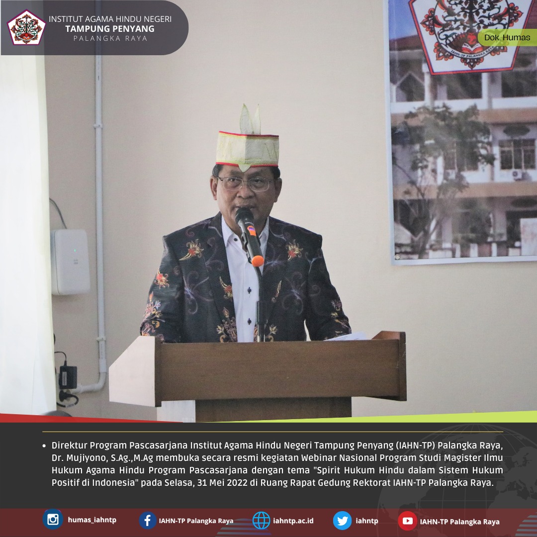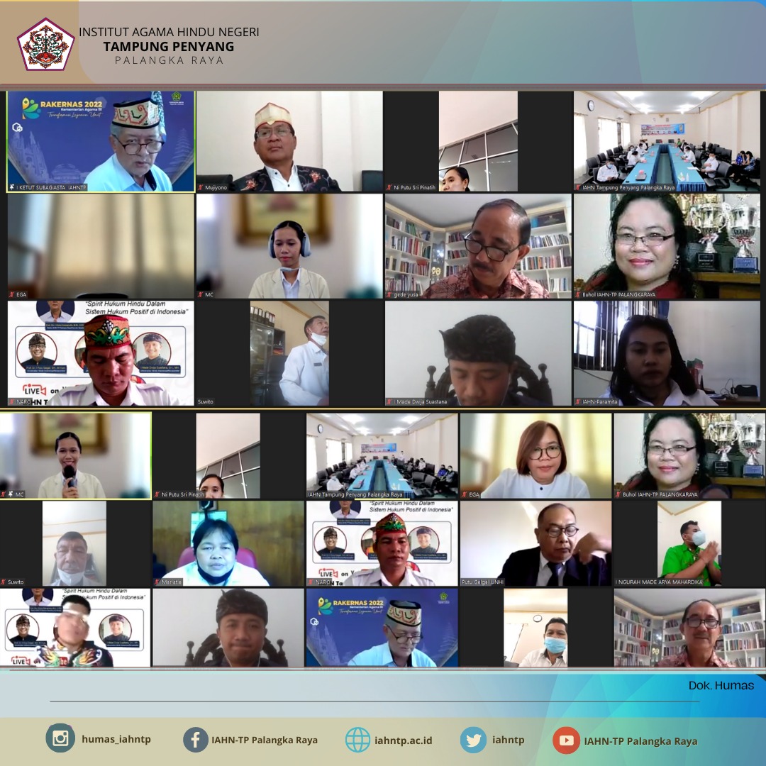 IAHNTPnews,- Program Studi Magister Ilmu Hukum Agama Hindu, Program Pascasarjana Institut Agama Hindu Negeri Tampung Penyang Palangka Raya menggelar Webinar Nasional dengan mengusung tema “Spirit Hukum Hindu dalam Sistem Hukum Positif di Indonesia”, yang dilaksanakan secara virtual melalui Zoom Meeting pada Hari Selasa, 31 Mei 2022.