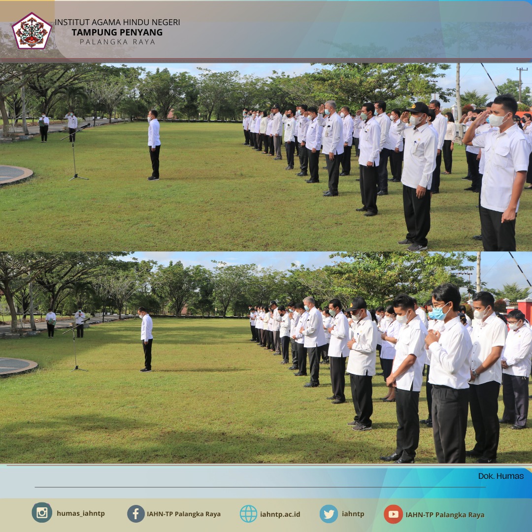 Apel diikuti oleh seluruh ASN di jajaran IAHN-TP Palangka Raya dengan Dr. Mujiyono, S.Ag., M.Ag selaku Rektor Institut Agama Hindu Negeri Tampung Penyang Palangka Raya sebagai Pembina.