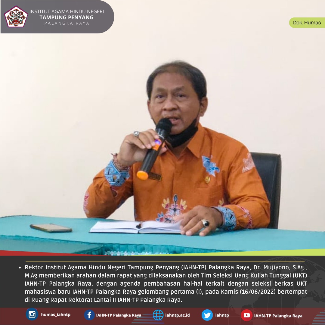 HUMAS IAHNTPnews,- Rektor Institut Agama Hindu Negeri Tampung Penyang (IAHN-TP) Palangka Raya, Dr. Mujiyono, S.Ag., M.Ag memberikan arahan dalam rapat yang dilaksanakan oleh Tim Seleksi Uang Kuliah Tunggal (UKT) IAHN-TP […]