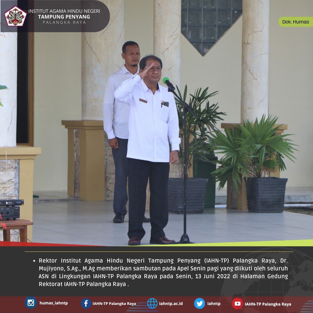 HUMAS IAHNTPnews,- Aparatur Sipil Negara (ASN) di lingkungan Institut Agama Hindu Negeri Tampung Penyang (IAHN-TP) Palangka Raya melaksanakan Apel Pagi bersama pada Hari Senin, 13 Juni 2022 di halaman Gedung […]