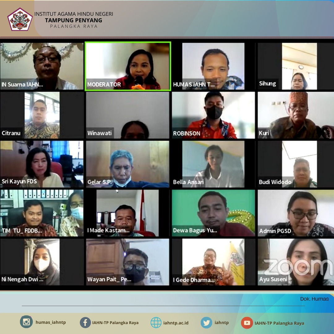 HUMAS IAHNTPNEWS,- Program Pascasarjana Institut Agama Hindu Negeri Tampung Penyang (IAHN-TP) Palangka Raya menyelenggarakan Webinar Internasional dengan tema “Religious Studies in the Era of Society 5.0” yang diselenggarakan secara daring (virtual) melalui Zoom Meeting pada hari Kamis (15/9/2022).