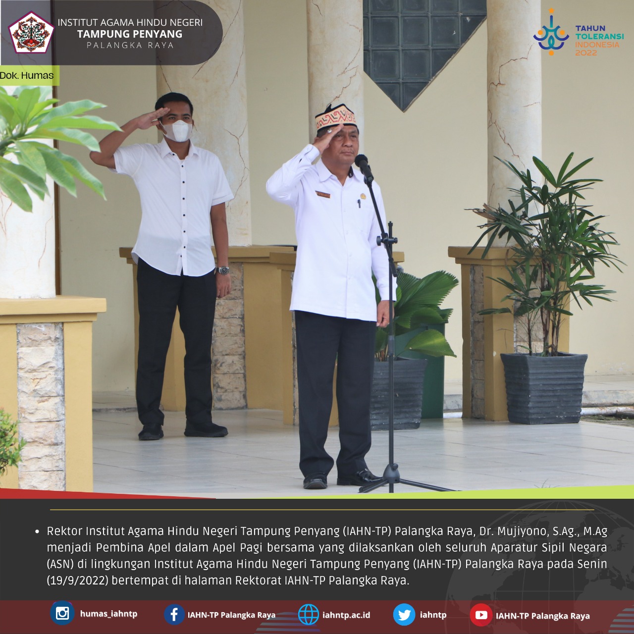 Humas IAHNTPnews,- Rektor Institut Agama Hindu Negeri Tampung Penyang Palangka Raya, Dr. Mujiyono, S.Ag., M.Ag Pimpin apel Rutin ASN di Lingkungan IAHN TP Palangka Raya, bertempat di Halaman Gedung Rektorat pada hari Senin, 19/09/2022.