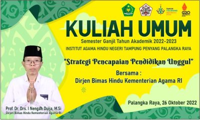 HUMAS IAHNTPnews,- Direktur Jenderal (Dirjen) Bimbingan Masyarakat (Bimas) Hindu Kementerian Agama (Kemenag) Republik Indonesia (RI) Prof. Dr. Drs. I Nengah Duija, MSi memberikan kuliah umum Semester Ganjil Tahun Akademik 2022-2023 Institut Agama Hindu Tampung Penyang (IAHN TP) Palangka Raya. Kuliah Umum mengambil sebuah Tema “Strategi Pencapaian Pendidikan Unggul” ini digelar di Aula Serbaguna IAHN TP...Read More
