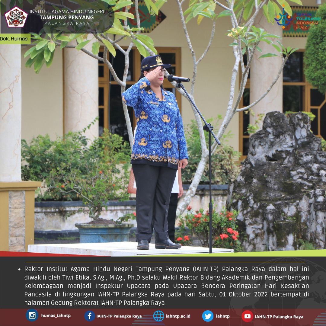 HUMAS IAHNTPnews,- Upacara Bendera Peringatan Hari Kesaktian Pancasila di lingkungan Institut Agama Hindu Negeri Tampung Penyang (IAHN-TP) Palangka Raya bertempat di halaman Gedung Rektorat IAHN-TP Palangka Raya pada hari Sabtu, 10 Oktober 2022.