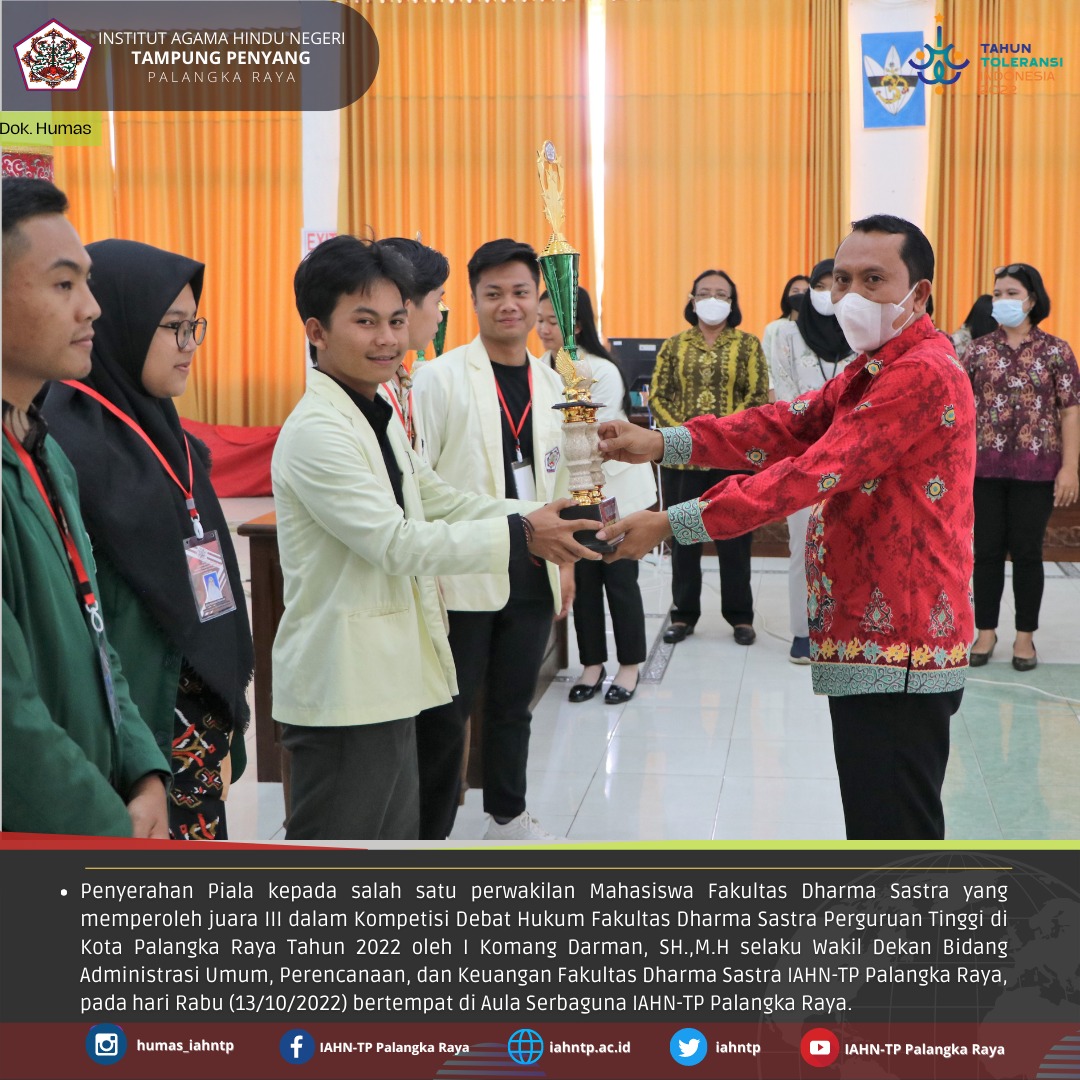 HUMAS IAHNTPnews,- Penutupan kegiatan Kompetisi Debat Hukum Fakultas Dharma Sastra Tahun 2022, Kamis (13/10/2022) bertempat di Aula Serbaguna IAHN-TP Palangka Raya. Kegiatan resmi ditutup oleh Dekan Fakultas Dharma Sastra yang […]