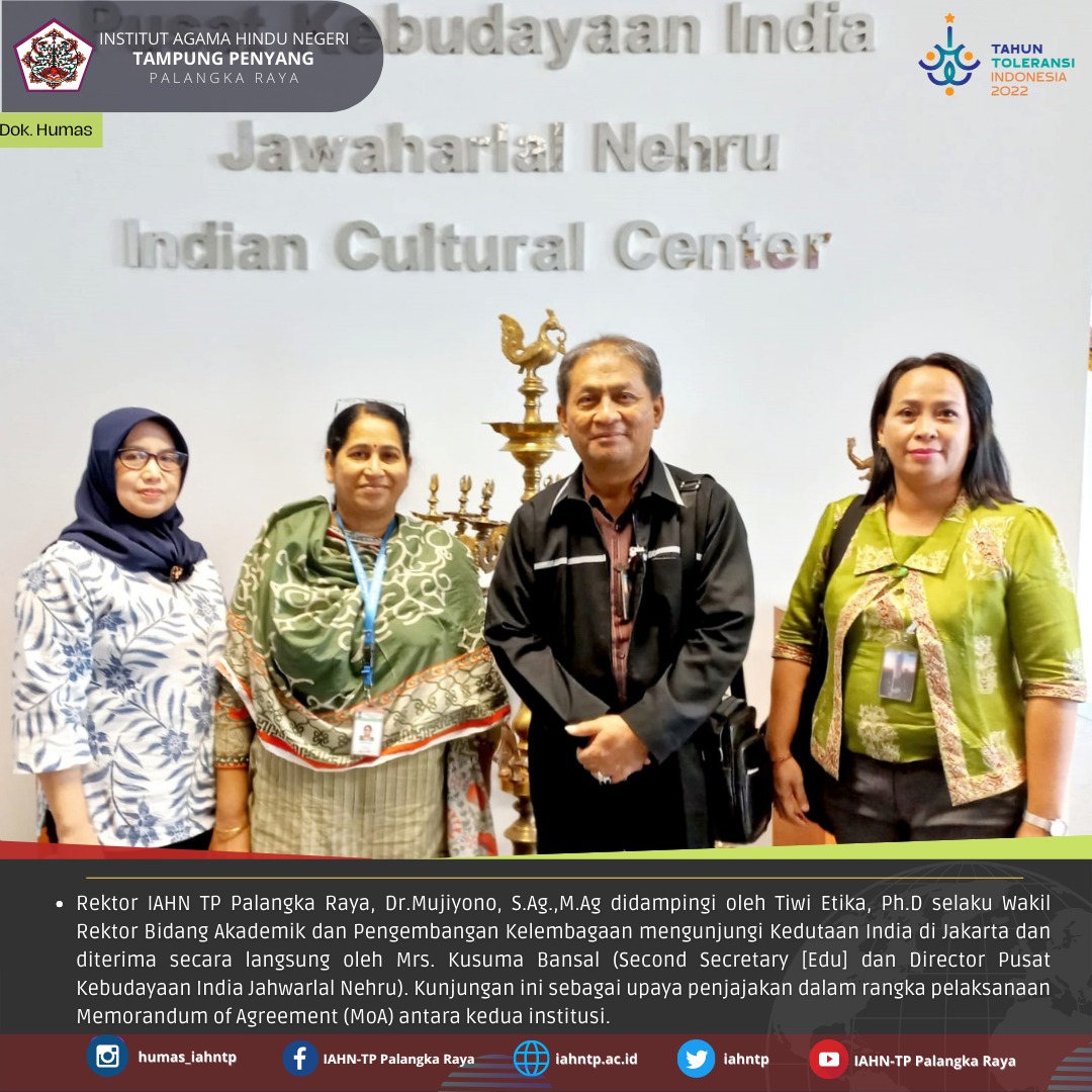 HUMAS IAHNTPnews,- Rektor Institut Agama Hindu Negeri Tampung Penyang (IAHN-TP) Palangka Raya, Dr.Mujiyono, S.Ag.,M.Ag didampingi oleh Tiwi Etika,S.Ag., M.Ag., Ph.D selaku Wakil Rektor Bidang Akademik dan Pengembangan Kelembagaan mengunjungi Kedutaan […]