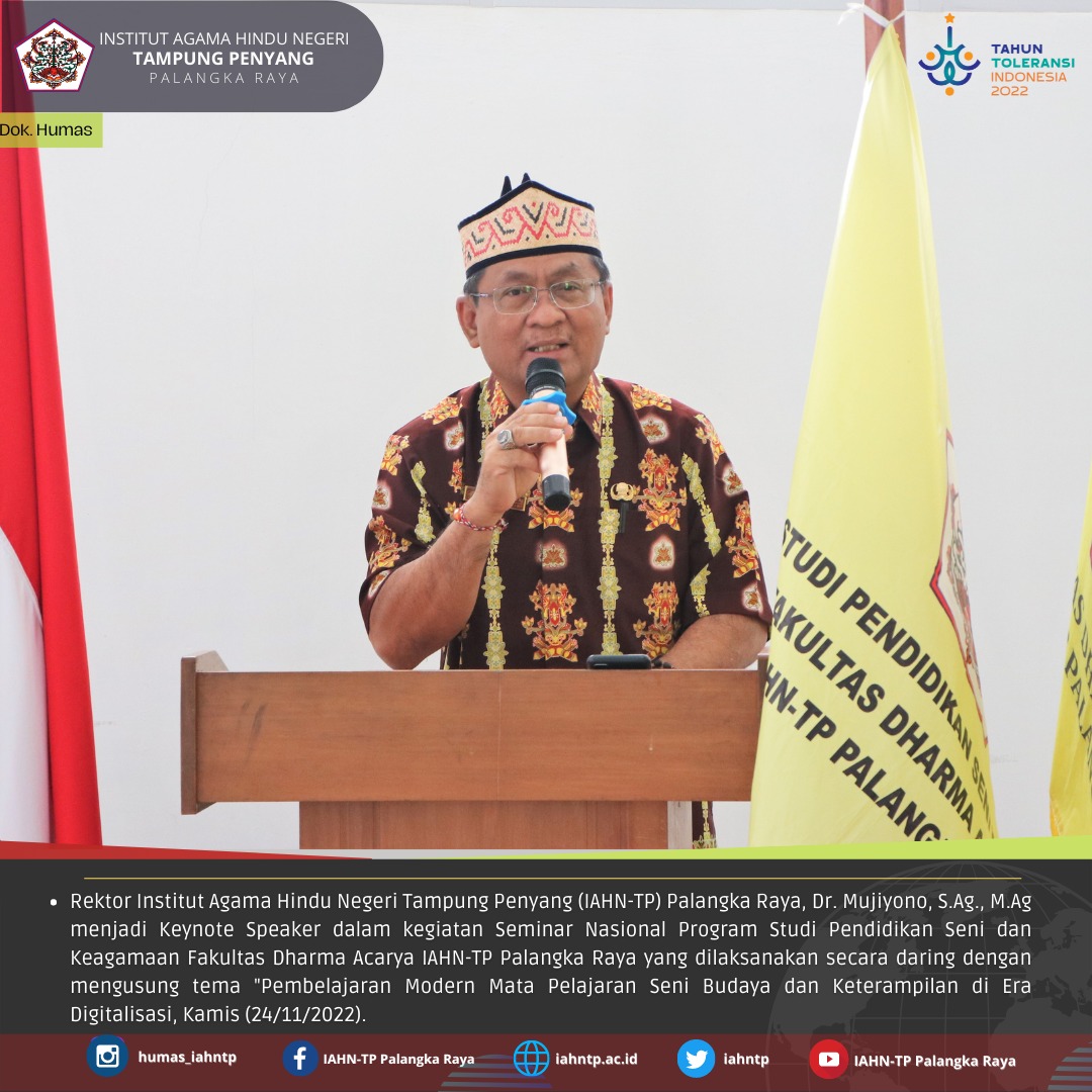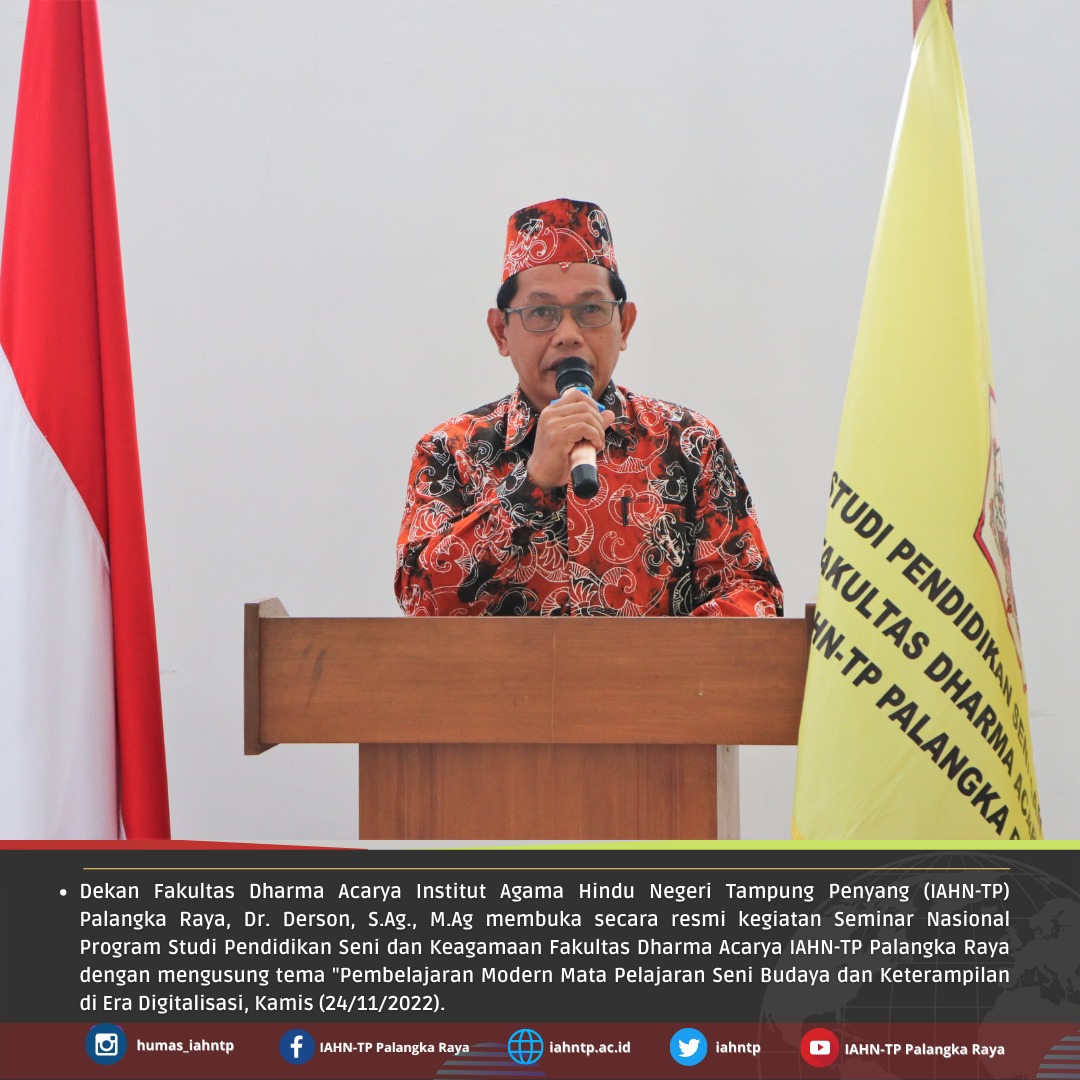 HUMAS IAHNTPnews,- Program Studi Pendidikan Seni dan Keagamaan, Fakultas Dharma Acarya, IAHN Tampung Penyang Palangka Raya adakan Webinar Nasional dengan mengusung tema “Pembelajaran Modern Mata Pelajaran Seni Budaya dan Keterampilan di Era Digitalisasi”, pada Kamis, 24 November 2022 yang berpusat di Ruang Kuliah Fakultas Dharma Acarya IAHN-TP Palangka Raya.