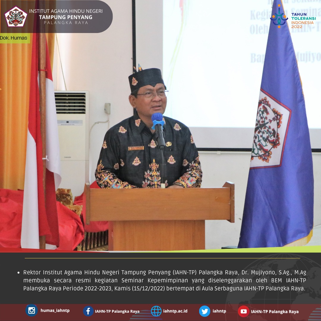 HUMAS IAHNTPnews,- Badan Eksekutif Mahasiswa (BEM) Institut Agama Hindu Negeri Tampung Penyang (IAHN-TP) Palangka Raya Periode 2021-2022 gelar Seminar Kepemimpinan, Kamis (15/12/2022).