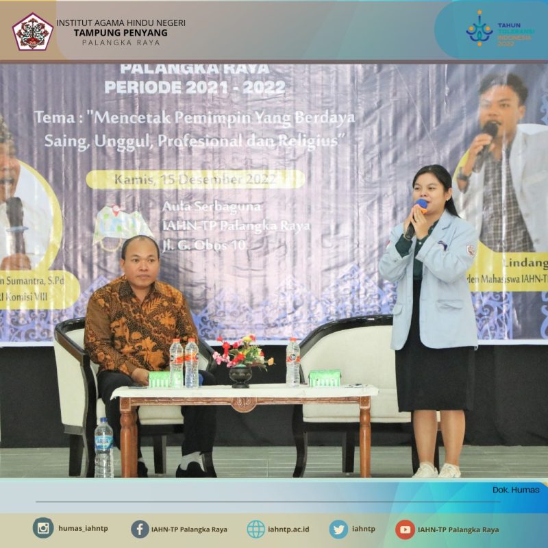 HUMAS IAHNTPnews,- Badan Eksekutif Mahasiswa (BEM) Institut Agama Hindu Negeri Tampung Penyang (IAHN-TP) Palangka Raya Periode 2021-2022 gelar Seminar Kepemimpinan, Kamis (15/12/2022). Seminar yang mengusung tema “Mencetak Pemimpin yang Berdaya Saing, Unggul, Profesional, dan Religius” ini dibuka secara resmi oleh Rektor IAHN-TP Palangka Raya, Dr. Mujiyono, S.Ag., M.Ag bertempat di Aula Serbaguna IAHN-TP Palangka Raya...Read More
