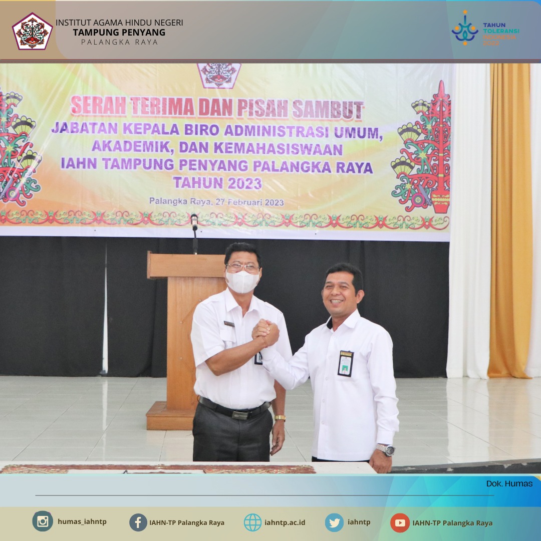 HUMAS IAHN TPnews,- Institut Agama Hindu Negeri Tampung Penyang (IAHN-TP) Palangka Raya melaksanakan acara Serah Terima dan Pisah Sambut Jabatan Kepala Biro Administrasi Umum, Akademik dan Kemahasiswaan, Senin (27/02/2023) di […]
