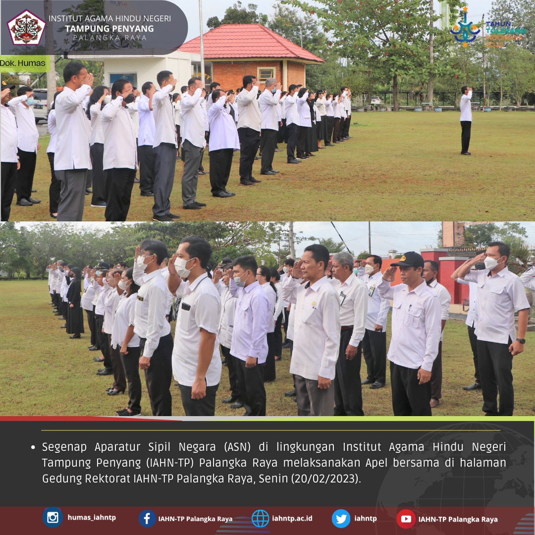 HUMAS IAHNTPnews,- Apel rutin Aparatur Sipil Negara (ASN) di lingkungan Institut Agama Hindu Negeri Tampung Penyang (IAHN-TP) Palangka Raya, Senin (20/02/2023).