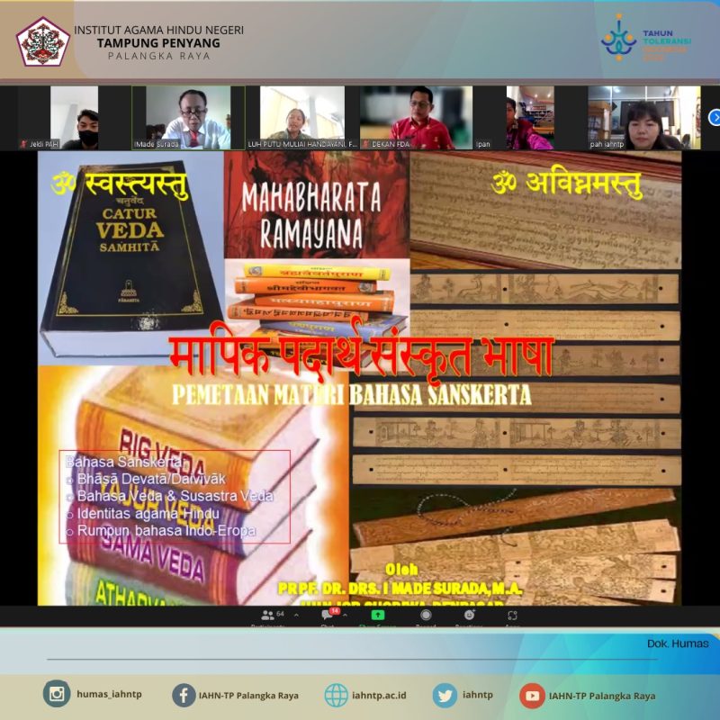 IAHN TPnews,- Program Studi Pendidikan Agama Hindu, Fakultas Dharma Acarya Institut Agama Hindu Negeri Tampung Penyang (IAHN-TP) Palangka Raya menggelar Kuliah Dosen Tamu secara daring, Selasa (04/05/2023). Kegiatan menghadirkan Prof. Dr. Drs I Made Surada, MA yang (Dosen UHN IGB Sugriwa Denpasar) sebagai Dosen tamu dengan mengangkat sebuah topik yaitu, “Pemetaan Materi Bahasa Sanskerta”. Kuliah...Read More