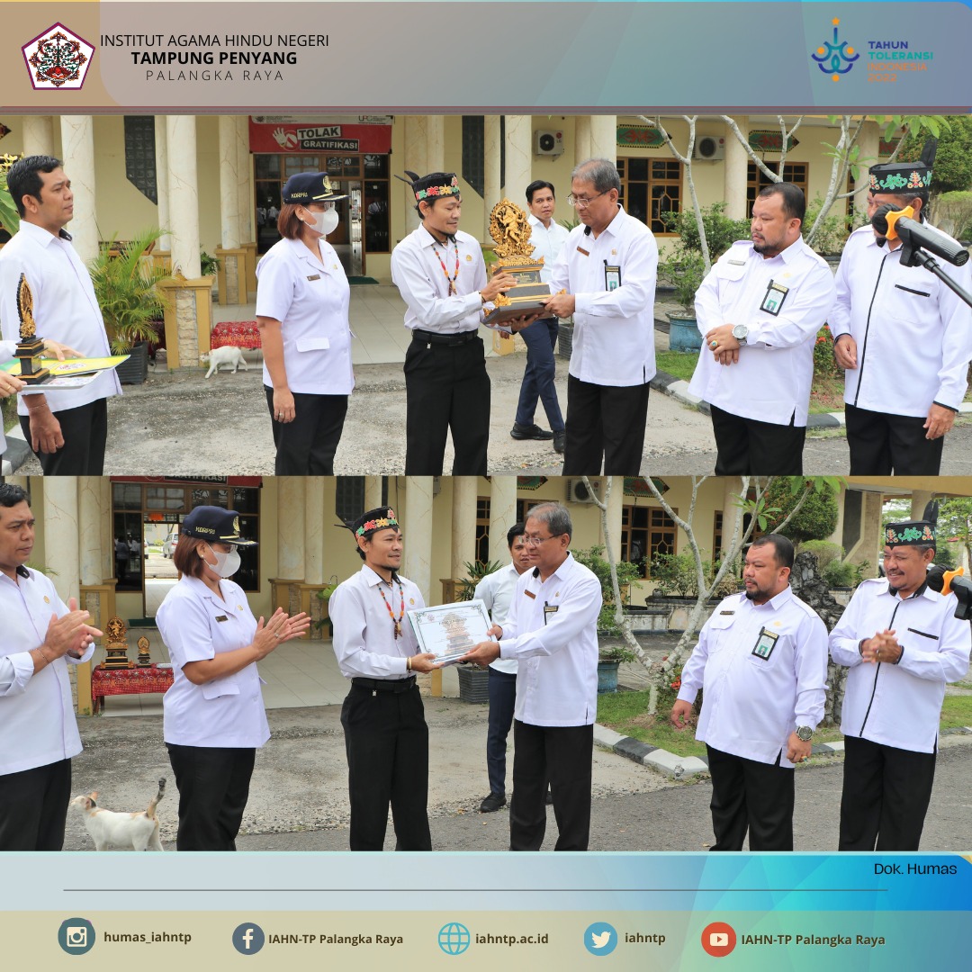 Dalam Apel kali ini juga dilaksanakan penyerahan Piala Bergilir dan Piala Juara I Lomba Yoga Asanas Tingkat Nasional yang diserahkan secara langsung oleh Pembina UKM Yoga IAHN-TP Palangka Raya, Komang Suarta, S.Ag., M.Si kepada Rektor IAHN-TP Palangka Raya didampingi oleh Para Wakil Rektor dan Plt. Kabiro AUAK IAHN-TP Palangka Raya.