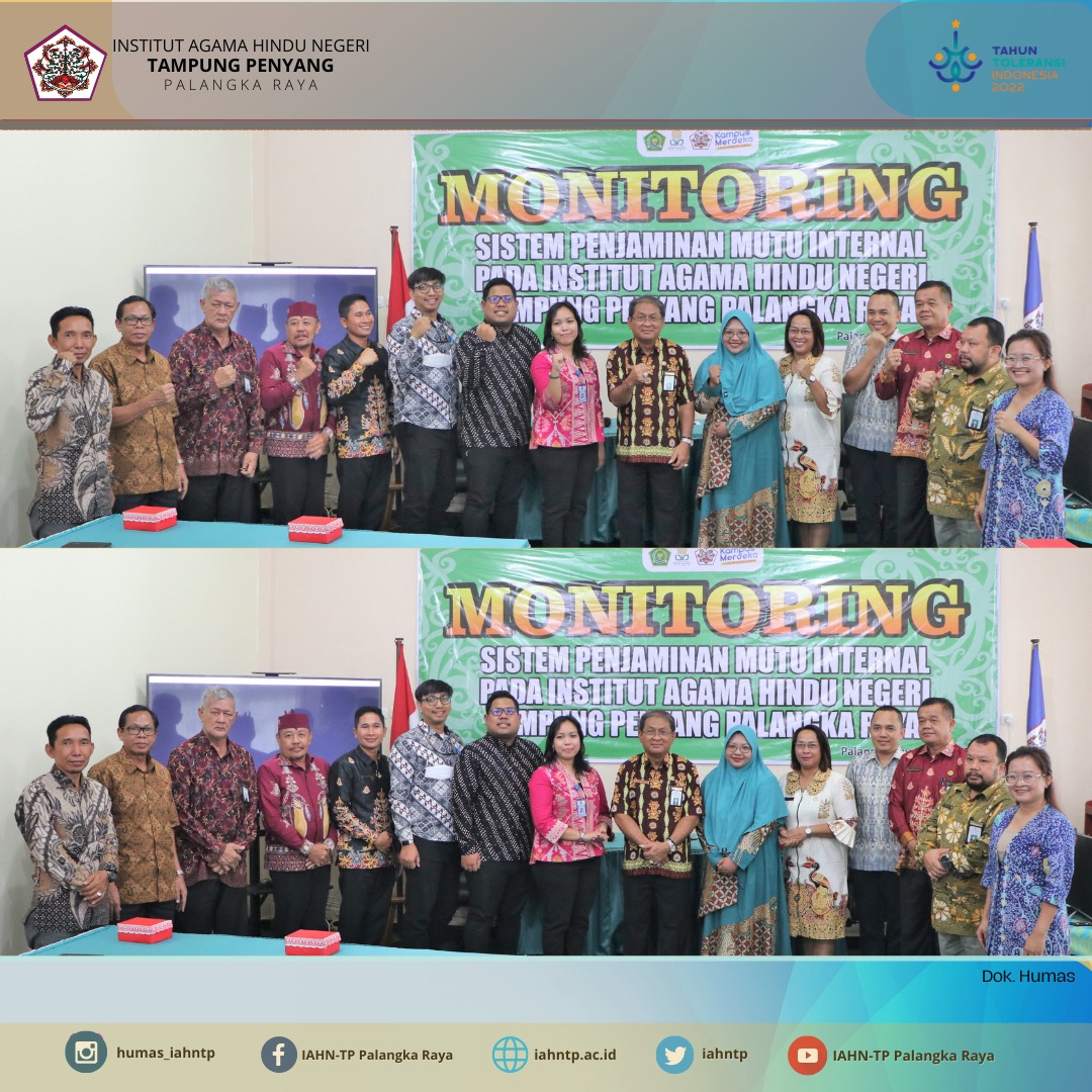 IAHNTPnews,- Tim Monitoring Sistem Penjaminan Mutu Internal (SPMI) Perguruan Tinggi Keagamaan Hindu (PTKH) Direktorat Jenderal Bimbingan Masyarakat Hindu bekerjasama dengan Universitas Islam Negeri (UIN) Sunan Kalijaga Yogyakarta melakukan Monitoring Sistem Penjaminan Mutu Internal (SPMI) pada Institut Agama Hindu Negeri Tampung Penyang (IAHN-TP) Palangka Raya Tahun 2023 pada hari Rabu, 5 Juli 2023 bertempat di Ruang Rapat Lt. 2 Rektorat IAHN-TP Palangka Raya.
