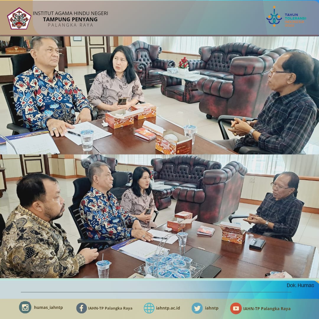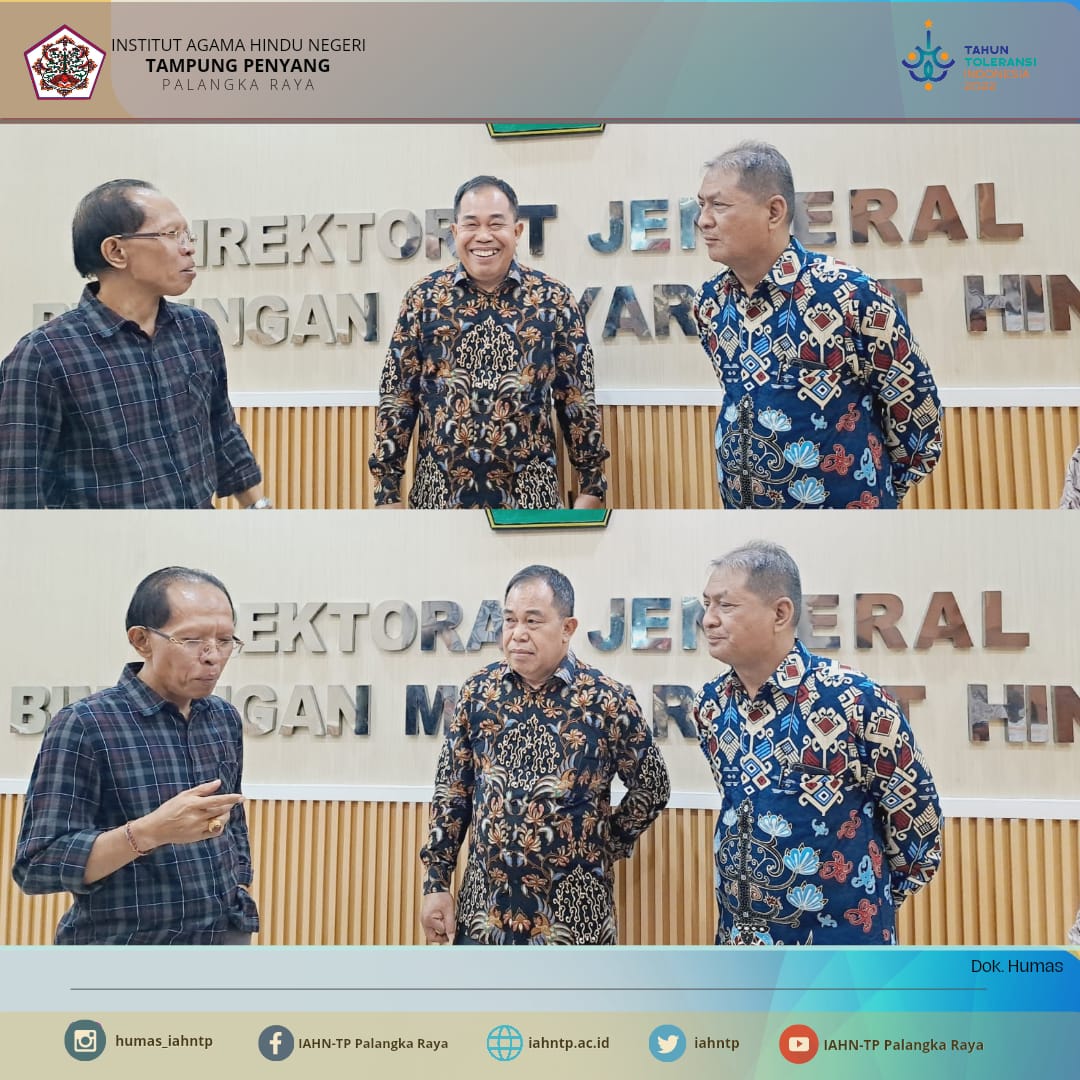 IAHNTPnews,- Rektor IAHN TP Palangka Raya Dr.Mujiyono, S.Ag.,M.Ag didampingi Wakil Rektor Bidang Administrasi Umum Perencanaan dan Keuangan Mitro, S.Pd.,M.Si bersama Tim IT usai melaksanaan kegiatan Persiapan Integrasi Sistem Informasi Akademik Pada Perguruan Tinggi Keagamaan melanjutkan agenda Diskusi dan koordinasi dengan Dirjen Bimas Hindu bertempat di ruang kerja Dirjen Bimas Hindu Kantor Kemenag. RI jalan Thamrin lantai 14, Jumat 3 Nopember 2023.