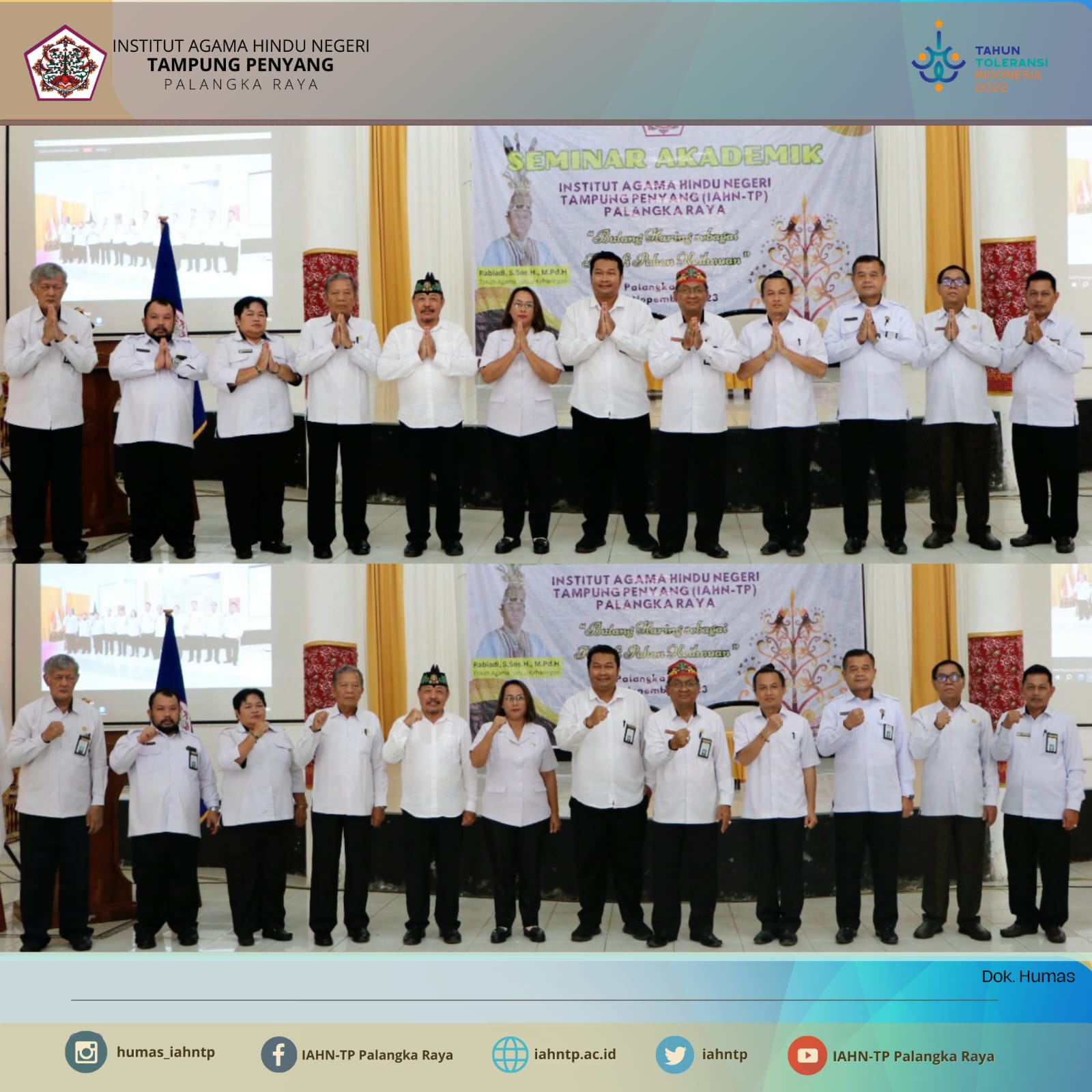 IAHNTPnews,- Institut Agama Hindu Negeri Tampung Penyang (IAHN-TP) Palangka Raya melaksanakan Seminar Akademik Tahun 2023 dengan mengusung tema “Batang Haring Sebagai Filosofi Pohon Keilmuan”, Senin (20/11/2023) bertempat di Aula Serbaguna IAHN-TP Palangka Raya.