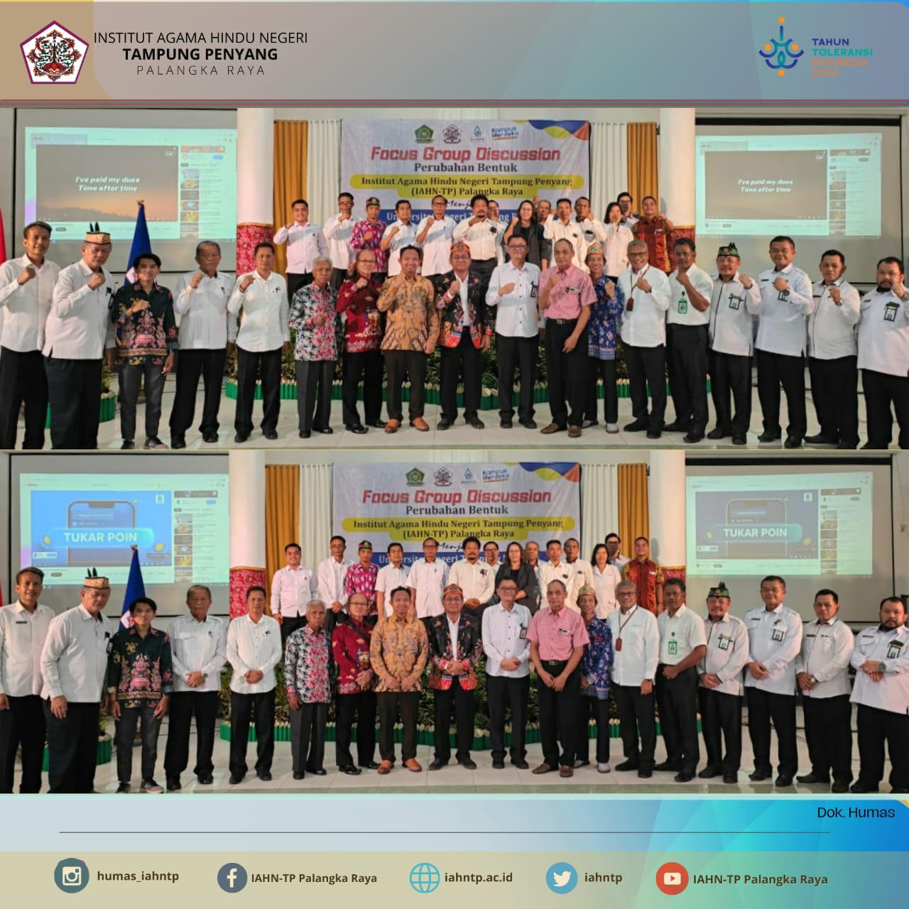 IAHNTPnews,- Institut Agama Hindu Negeri Tampung Penyang (IAHN-TP) Palangka Raya menggelar Focus Group Discussion (FGD) tentang Naskah Akademik Perubahan Bentuk Institut Agama Hindu Negeri Tampung Penyang (IAHN-TP) Palangka Raya menjadi Universitas Hindu Negeri Tampung Penyang (UHN-TP) Palangka Raya, Selasa (21/11/2023) berlangsung di Aula Serbaguna IAHN-TP Palangka Raya.