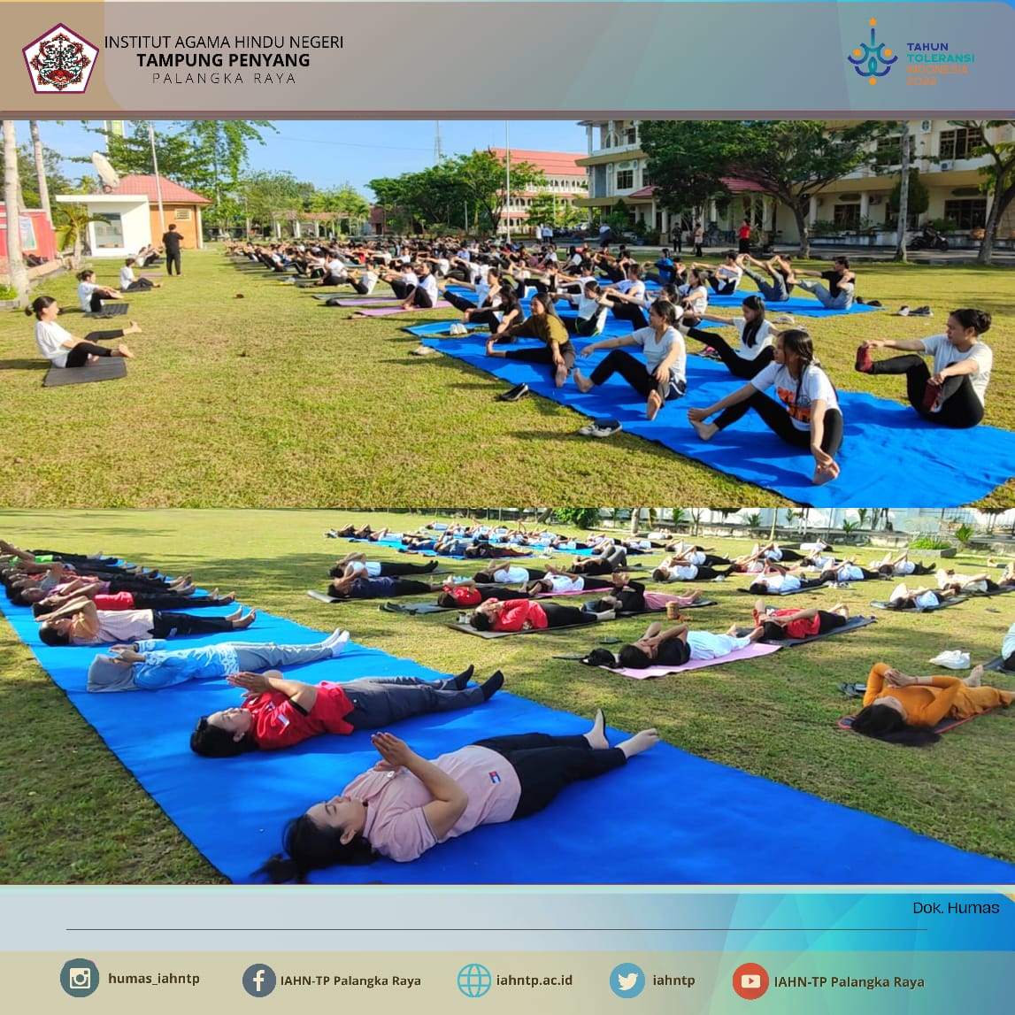 Rangkaian kegiatan diawali dengan yoga bersama di halaman Gedung Rektorat IAHN TP Palangka Raya diikuti oleh Mahasiswa dan juga undangan yang berkenan hadir untuk yoga bersama. Hadir juga Kepala Dinas Kesehatan Kota Palangka Raya yang diwakili oleh ibu Nur Ainawiyah, S.K.M selaku Kabid Kesehatan Masyarakat.