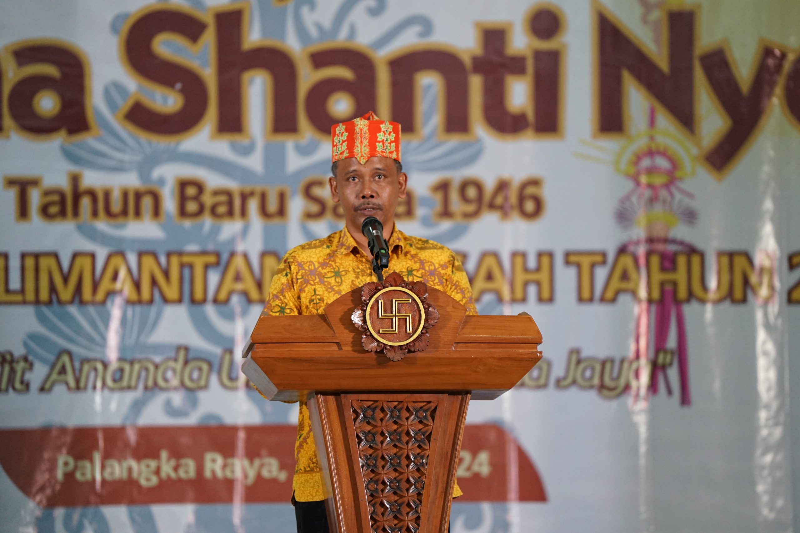 Dirjen Bimas Hindu Kemenag RI, Prof. Dr. Drs. I Nengah Duija, M.Si dalam sambutannya dibacakan oleh Kepala Bidang Bimbingan Masyarakat Hindu I Made Adnyana menyampaikan apresiasi yang mendalam kepada Panitia, Lembaga Agama dan Keagamaan Hindu di Kalimantan Tengah atas terlaksananya kegiatan Dharma Shanti ini, Dharma Shanti adalah rangkaian terakhir dari Hari Suci Nyepi dan mengandung makna yang sangat mendalam.