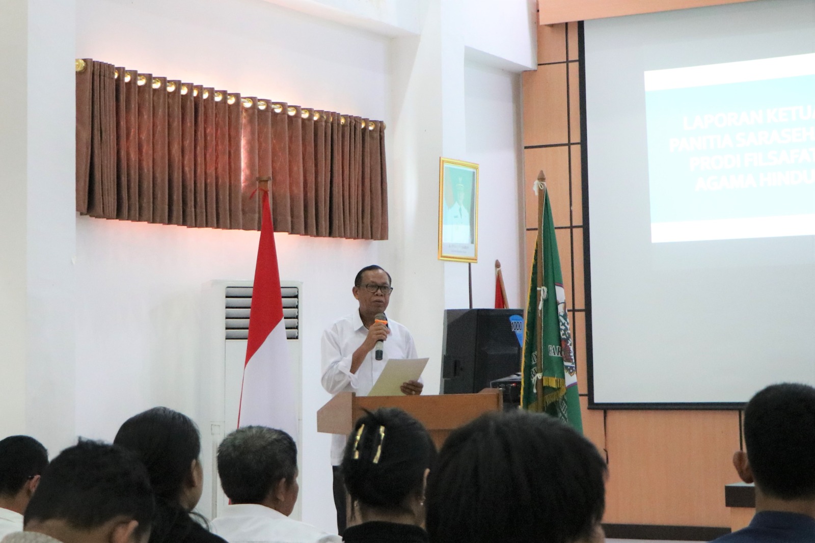 Drs. I Ketut Soter M.Pd.H selaku Ketua Panitia mengatakan tujuan dilaksanakan kegiatan Sarasehan ini adalah untuk memfasilitasi mahasiswa dalam memperkuat kecakapan dan kemampuan diri dalam keilmuan filsafat Hindu. Serta meningkatkan kemampuan mahasiswa dalam menganalisa isu-isu terkini dimasyarakat dan konsep-konsep kehidupan ideal dalam keilmuan filsafat Hindu.