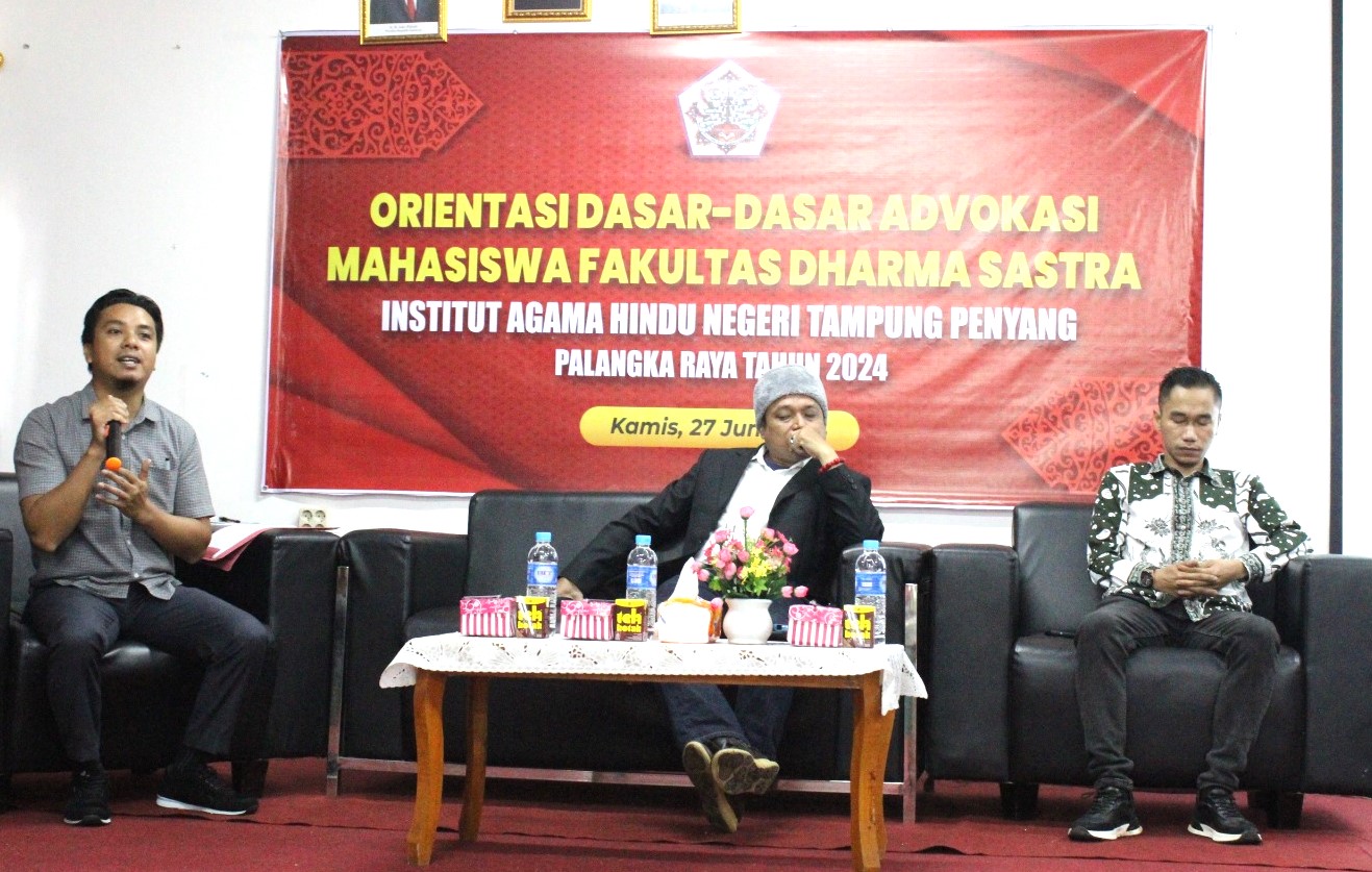 IAHNTPnews,- Fakultas Dharma Sastra Institut Agama Hindu Negeri Tampung Penyang (IAHN-TP) Palangka Raya menggelar kegiatan Orientasi Dasar-Dasar Advokasi Mahasiswa Fakultas Dharma Sastra Tahun 2024 dibuka secara resmi oleh Rektor IAHN-TP Palangka Raya yang dalam kesempatan ini diwakili oleh Dekan Fakultas Dharma Sastra, Dr. I Made Kastama, SH., M.H bertempat di Aula Fakultas Dharma Sastra IAHN-TP Palangka Raya, Kamis 27 Juni 2024.
