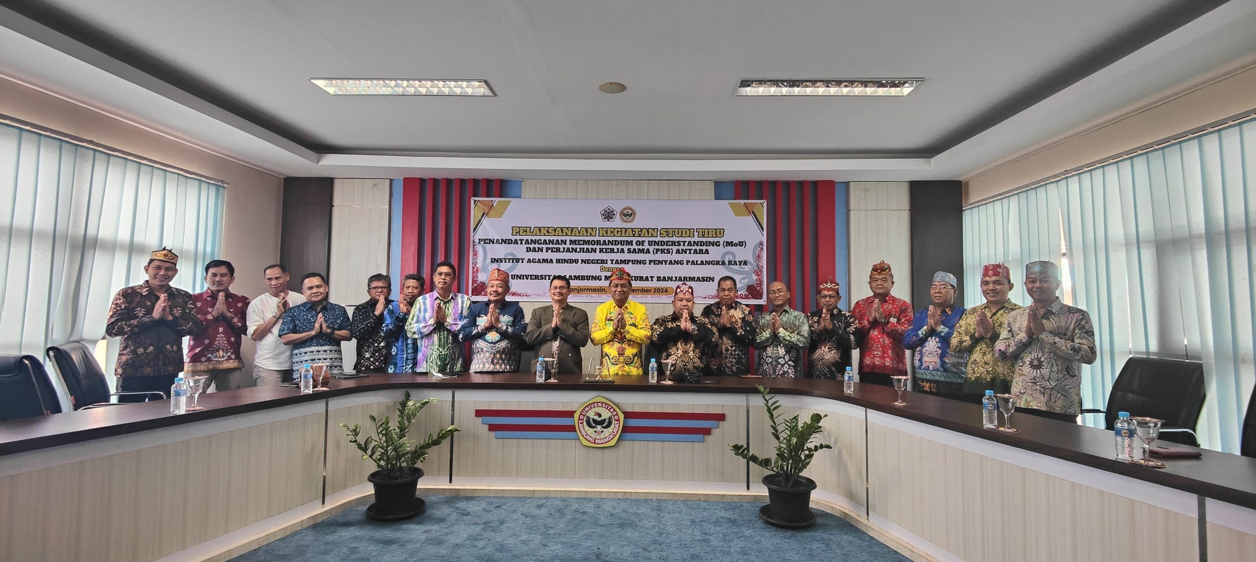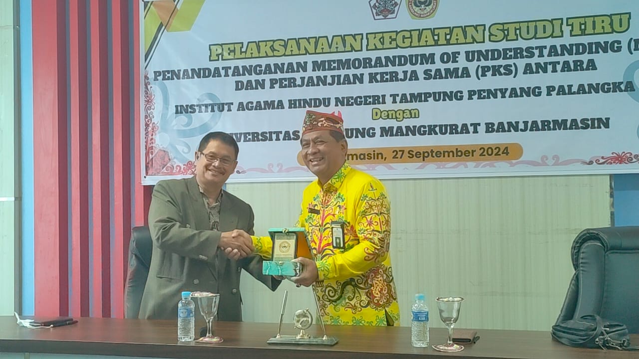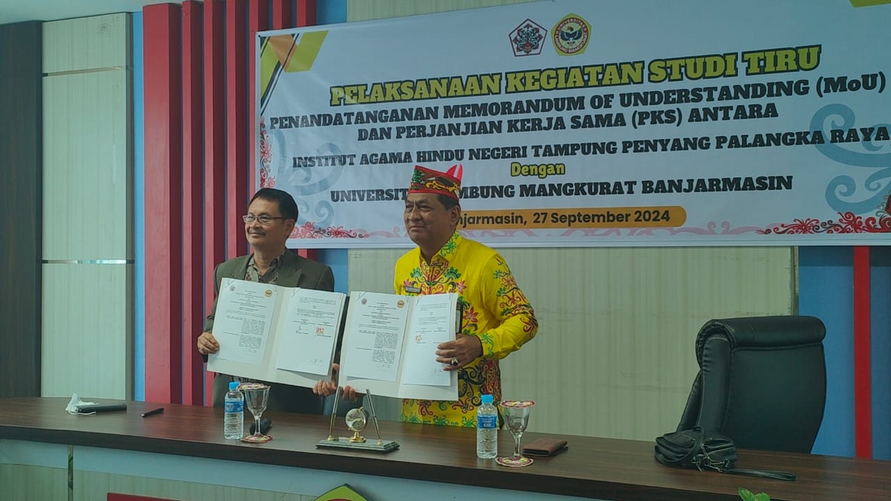 IAHNTPnews,- Institut Agama Hindu Negeri Tampung Penyang Palangka Raya (IAHN-TP) resmi menandatangani Nota Kesepahaman (MoU) dengan Universitas Lambung Mangkurat (ULM) Banjarmasin. Acara tersebut dilaksanakan di ruang seminar Gedung Pascasarjana ULM, dan dihadiri oleh sejumlah pejabat dari kedua institusi, Jumat (27/09).