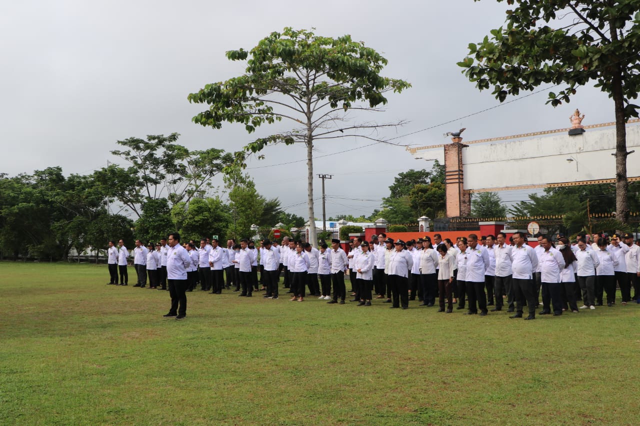 IAHNTPnews,- Institut Agama Hindu Negeri Tampung Penyang (IAHN-TP) Palangka Raya menggelar apel pagi pada Senin, 14 Oktober 2024. Bertindak sebagai pembina apel, Rektor IAHN-TP Palangka Raya, Dr. Mujiyono, memberikan beberapa pesan penting terkait aktivitas kampus, pemanfaatan teknologi, dan etika Aparatur Sipil Negara (ASN).