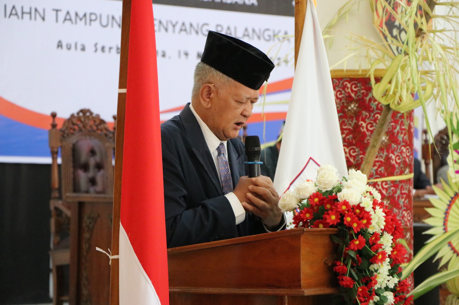 Pada kesempatan ini, Rektor Dr. Mujiyono memberikan sambutan dengan suasana haru, mengucapkan turut berduka cita atas berpulangnya Herwandi, S.Pd.AH., M.H., seorang dosen Fakultas Dharma Sastra dan alumni IAHN TP Palangka Raya. Rektor juga mengucapkan terima kasih kepada para mahasiswa pascasarjana yang telah mempercayakan studi mereka di IAHN TP Palangka Raya.