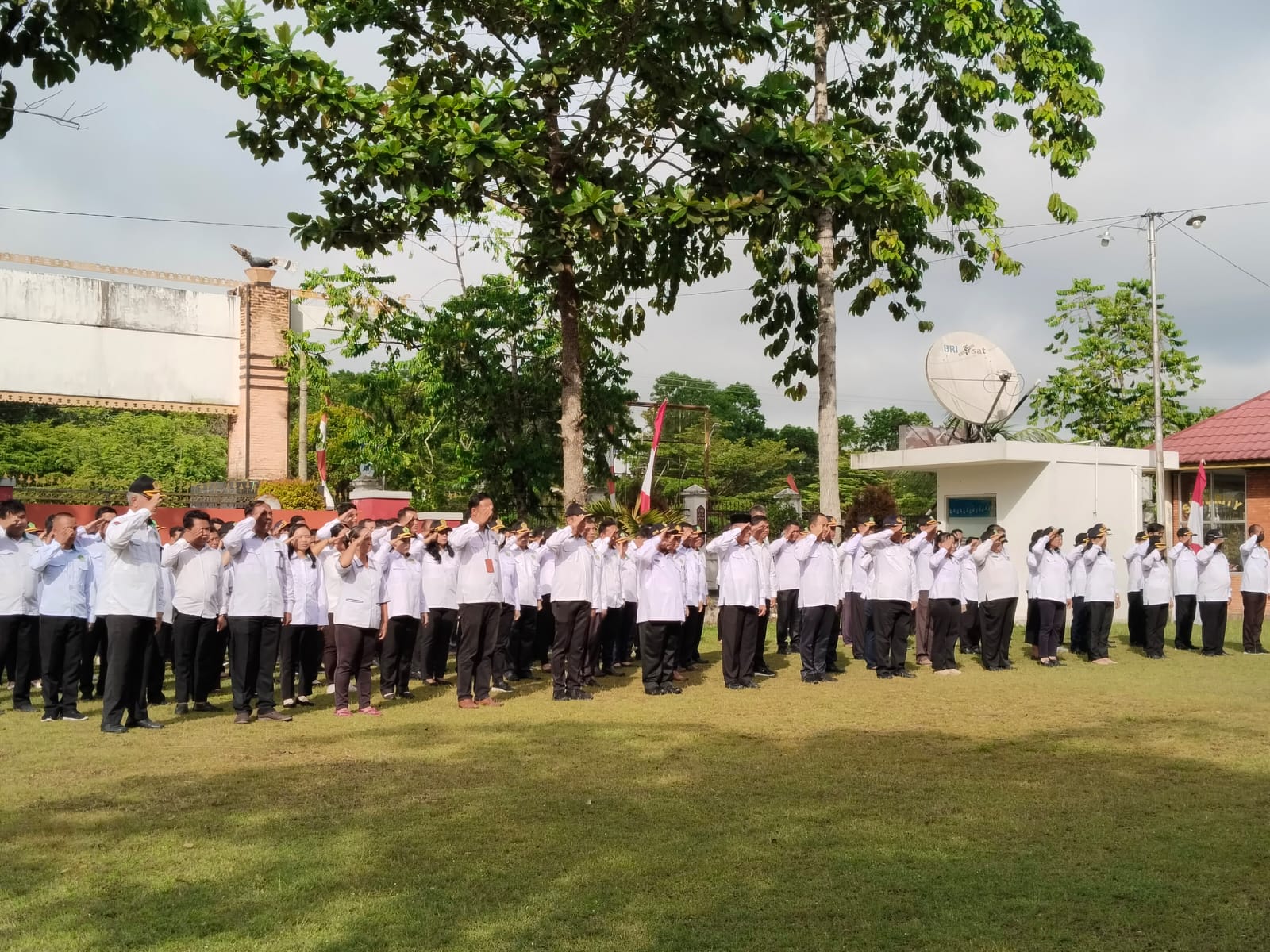 IAHNTPnews,- Institut Agama Hindu Negeri Tampung Penyang (IAHN-TP) Palangka Raya melaksanakan apel rutin yang dipimpin oleh Kepala Biro Administrasi Umum Akademik dan Kemahasiswaan (AUAK) I Made Santika, S.Sos.,M.Si selaku pemimpin apel dan dihadiri oleh Rektor IAHN-TP, Dr. Mujiono, S.Ag.,M.Ag sebagai pembina apel.