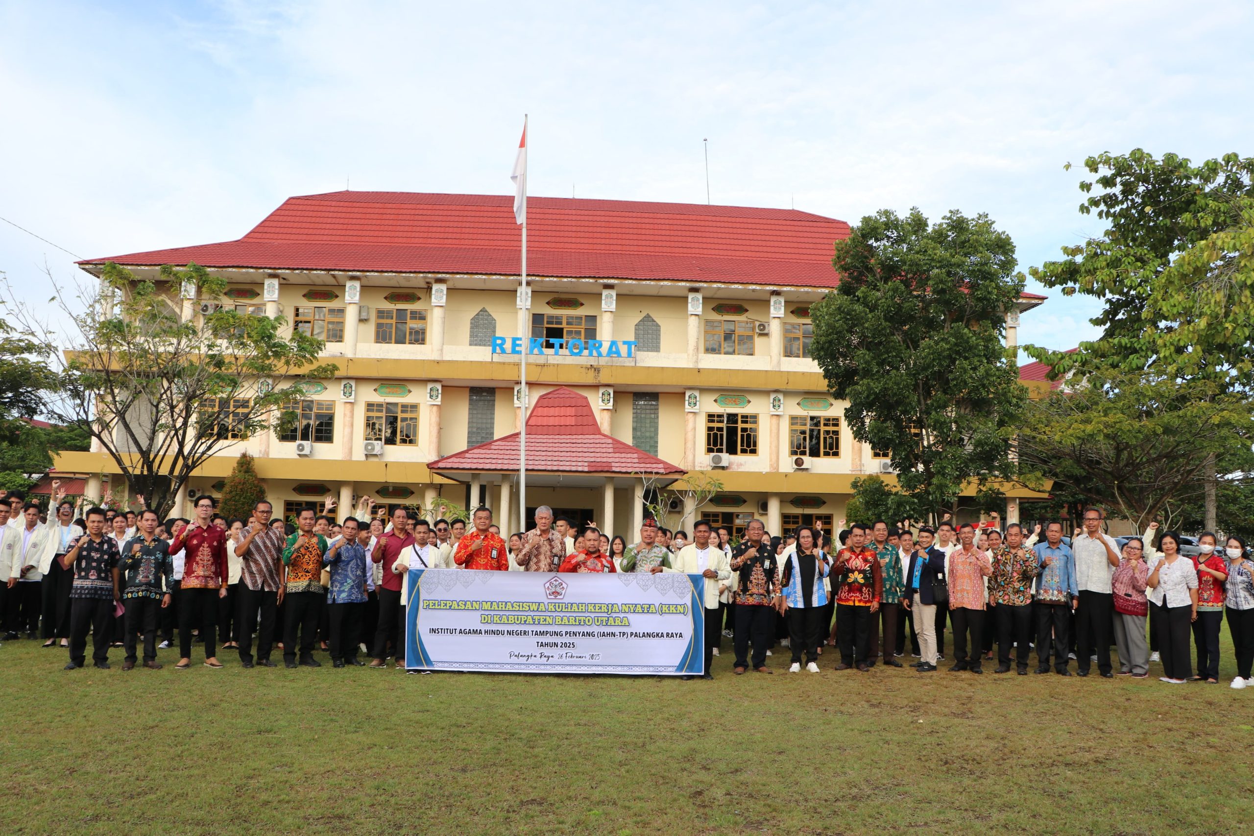 IAHNTPnews,- Rektor Institut Agama Hindu Negeri Tampung Penyang (IAHN-TP) Palangka Raya resmi melepas 169 orang mahasiswa untuk melaksanakan Kuliah Kerja Nyata (KKN) di 13 lokasi di Kabupaten Barito Utara. Acara pelepasan ini berlangsung khidmat dan dihadiri oleh Unsur Pimpinan, dosen pembimbing, serta para mahasiswa peserta KKN. Bertempat di Halaman Rektorat IAHN-TP pada hari Rabu (26/02).